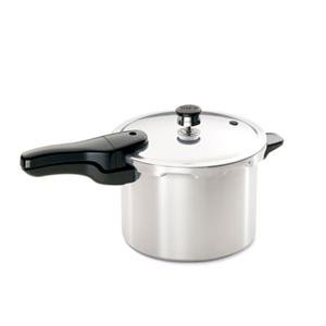 The smart choice for preparing today's lower calorie foods. Cooks three to ten times faster than ordinary cooking methods! Saves times, energy, and money. Pressure cooking preserves flavors and nutrients, and even tenderizes lean cuts of meat. Pressure regulator maintains the proper cooking pressure automatically. Ideal for use on regular and smooth-top ranges. Strong, heavy-gauge aluminum for quick, even heating, easy cleaning, and long life.