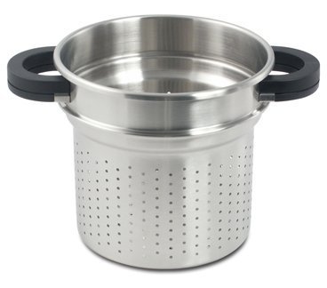 Holding 6-1/2 quarts, this attractive pressure cooker handles most recipes and offers many conveniences to simplify both use and cleanup. Made of heavy-gauge, 18/10 stainless steel, the main chamber offers strength and durability while a polished exterior shine gives it an eye-catching appearance. A Trans Therm base evenly distributes heat and brings excellent high-temperature retention. The black phenolic handle is ergonomically designed for comfort and resists heating; additionally, it easily detaches to simplify cleanup. In the event that excessive pressure begins to build up, an integrated safety feature audibly indicates the need to reduce heat. Pressure cooking lessens cooking time and preserves vitamins and minerals for healthier meals. Includes a perforated insert and trivet, and an accompanying collection of recipes.